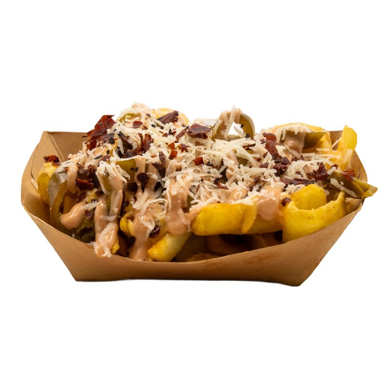 Cheesy Fries (+1,00 €), Süßkartoffeln (+1,50 €), Tenders (+2,00 €), Trüffel Fries (+3,00 €)